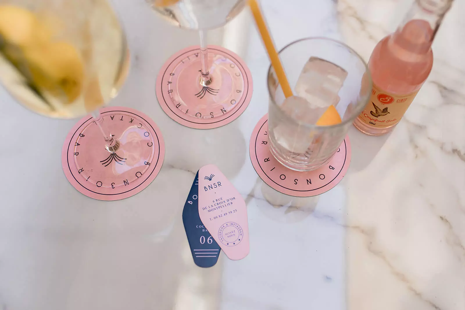 Pour ce nouveau projet de Design Global, l’équipe du ByCoss Bar nous a demandé de travailler sur une ambiance de bar pour leur nouvelle adresse au centre ville de Montpellier. La page blanche s’est petit à petit remplie de mots, d’idées, d’intentions pour aboutir à une atmosphère de Bar d’Hôtel.Une fois l’esprit du bar posé, nous l’avons décliné pour créer une identité de marque solide, naming > Bonsoir, logo et épicerie graphique complète, création d’une tapisserie, travail sur l’atmosphère décoratif du lieu avec les architectes de Studio 1. L’artisanat local a été mis en valeur tout au long des travaux, une réalisation aboutie et un travail d’équipe enrichissant aussi bien professionnellement qu’humainement, merci à tous.