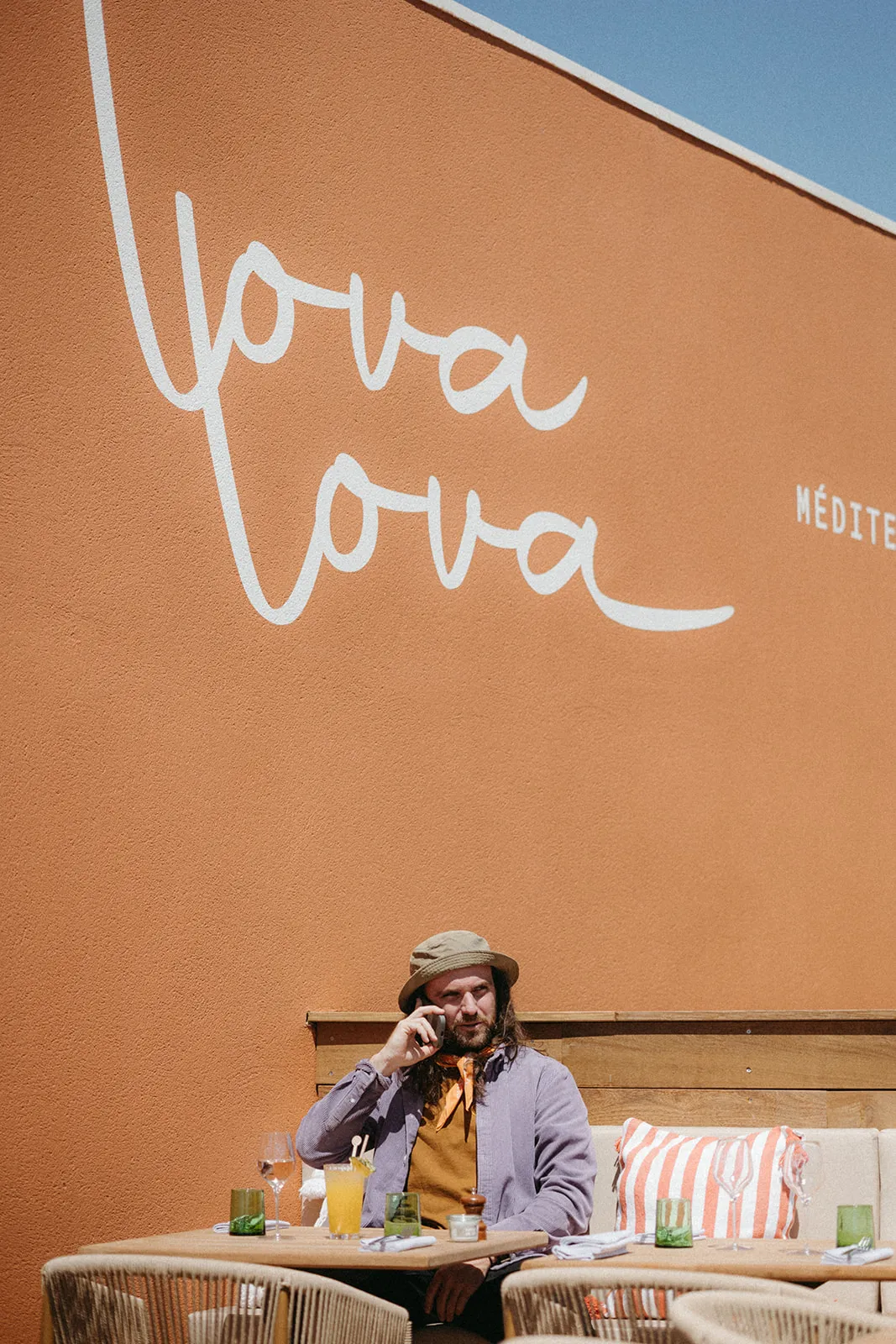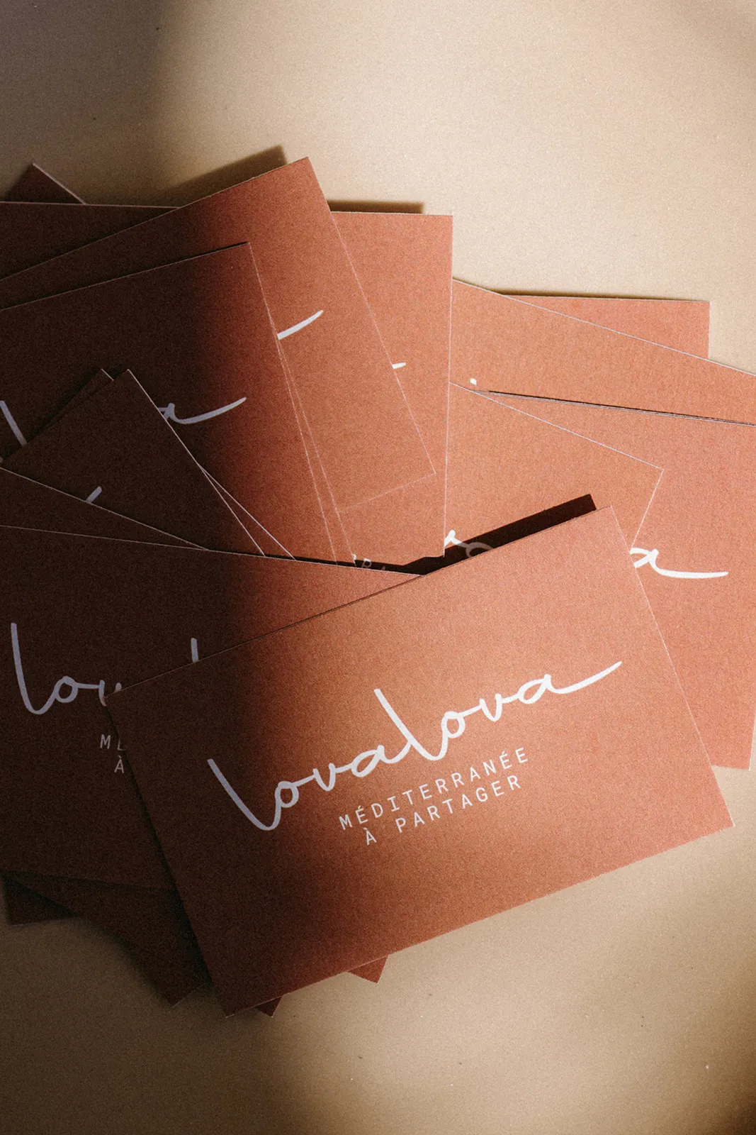 Il y a des projets qui se détachent, comme une mélodie qu’on ne peut s’empêcher de fredonner. Ça ne s’explique pas vraiment, mais je vais quand même essayer. Il y a d’abord une première impression, ce sentiment que les choses vont bien se passer, une confiance instinctive, une bienveillance naturelle. C’est ce qu’il s’est passé avec Sophie et Cédric sur ce projet. Dès le début, il y a eu un l’envie d’avancer ensemble et de faire les choses bien. Pour leur nouvelle aventure sur la promenade du Lido à Sète, ils voulaient rendre hommage à leurs jumelles, créer un lieu débordant d’amour et de bonnes vibrations. Le nom et le logo sont nés ensemble. Comme toujours, nous avons griffonné sur des feuilles blanches, mélangeant mots-clés et croquis. Et soudain, tout s’est imbriqué parfaitement. Leurs mots ont résonné en nous : pour eLLes, pour les jumeLLes, pour nos fiLLes. Les L se sont transformés en cœur, symboles de partage et de famille. Et le nom s’est imposé : Love. En jouant sur la répétition, pour relier leurs deux filles, LoveLove, avec une touche méditerranéenne, LovaLova. Voici le descriptif de cette identité visuelle. Nous avons bien entendu cherché d’autres noms et testé d’autres logos, mais la première intuition fut la bonne. LOVALOVA est né ! La suite fut tout aussi fluide et plaisante. Nous avons travaillé ensemble sur la mise en place de l’identité visuelle sur les réseaux sociaux avec, comme toujours, la talentueuse A Di Francesco pour les photos. Sophie et Cédric se sont aussi approprié le logo en personnalisant beaucoup de décorations sur place en plus de leurs jolies trouvailles. Pour conclure le projet, nous avons eu la chance de poser le logo sur le mur, de jouer au peintre en lettres le temps d’une journée, de jouer avec la matière, la peinture. Comme pour boucler la boucle, nous avons reproduit ce logo en réel, à la main, en grand format, ce logo crayonné à l’instinct un matin sur un bout de papier. Voir ses idées prendre vie, créer pour des gens bien, pour une belle histoire, c’est ce que nous aimons. Merci, que l’aventure continue…
