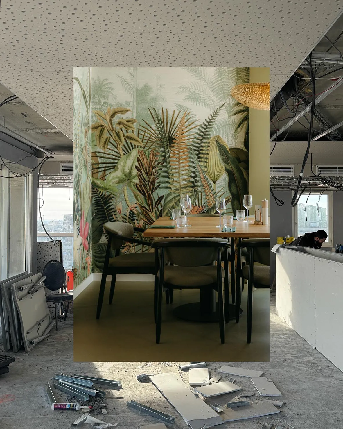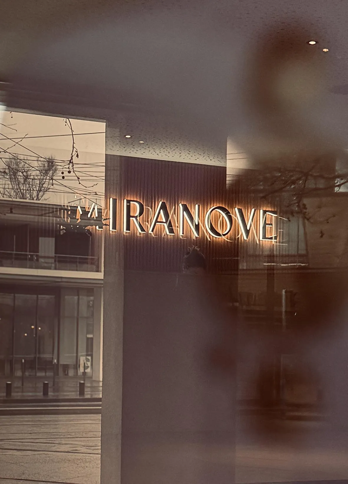 Débuté en 2022 avec la création du nom et du logo, le projet MIRANOVE nous a donné l’occasion de revenir en 2024 pour finaliser les espaces restaurant et rooftop, en assurant la direction artistique et l’aménagement.MIRANOVE, c’est l’histoire d’une rencontre entre la lumière et les espaces.Depuis le début, nous avons joué avec cette idée : surprendre le regard, valoriser les reflets, laisser la lumière devenir matière à part entière.Pour le restaurant, nous avons imaginé un dialogue entre plantes réelles et tapisserie, des reflets dorés en écho aux touches de jaune du carrelage, le tout enveloppé de lumière, avec en toile de fond une vue panoramique sur Montpellier à 360°. Un espace baigné de clarté, pensé comme une respiration.Et puis, on monte. Le rooftop change d’ambiance, mais la lumière reste le fil conducteur. Des motifs qui prennent le relais, une couleur qui s'accumule, des textures qui réchauffent… Un lieu accueillant et réconfortant, pensé pour vivre à toute heure du jour ou de la nuit.Un immense merci à Ozan et Philippe pour leur confiance, à Mélanie et Arthur de ARA Architecture pour cette belle collaboration, et à l’incontournable Thomas de C-Mobilier pour le mobilier. Une réalisation aboutie, portée collectivement. Merci à tous.