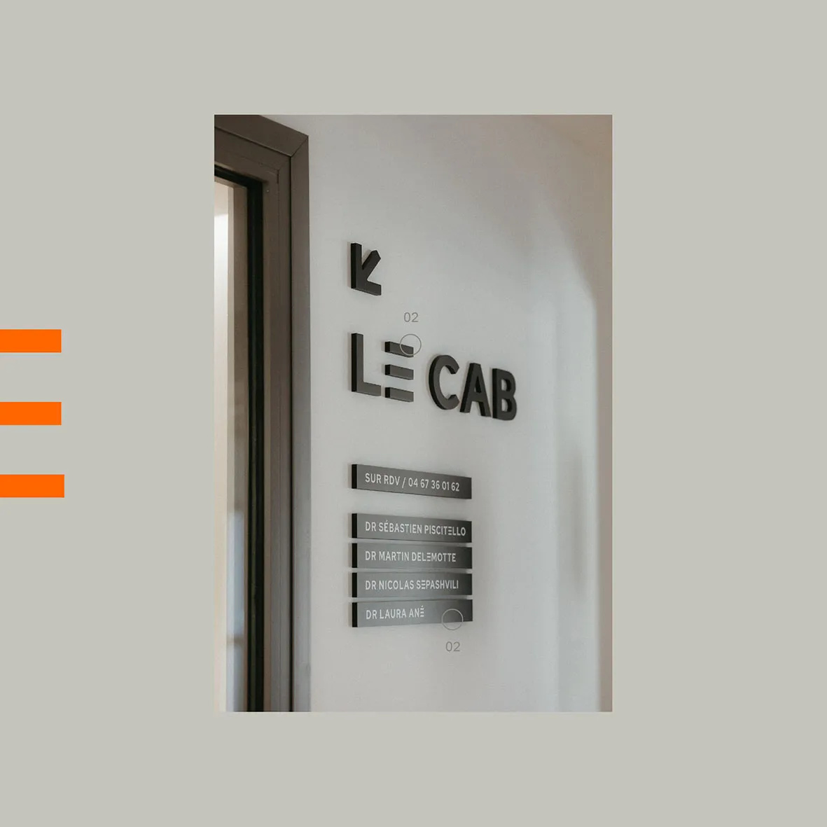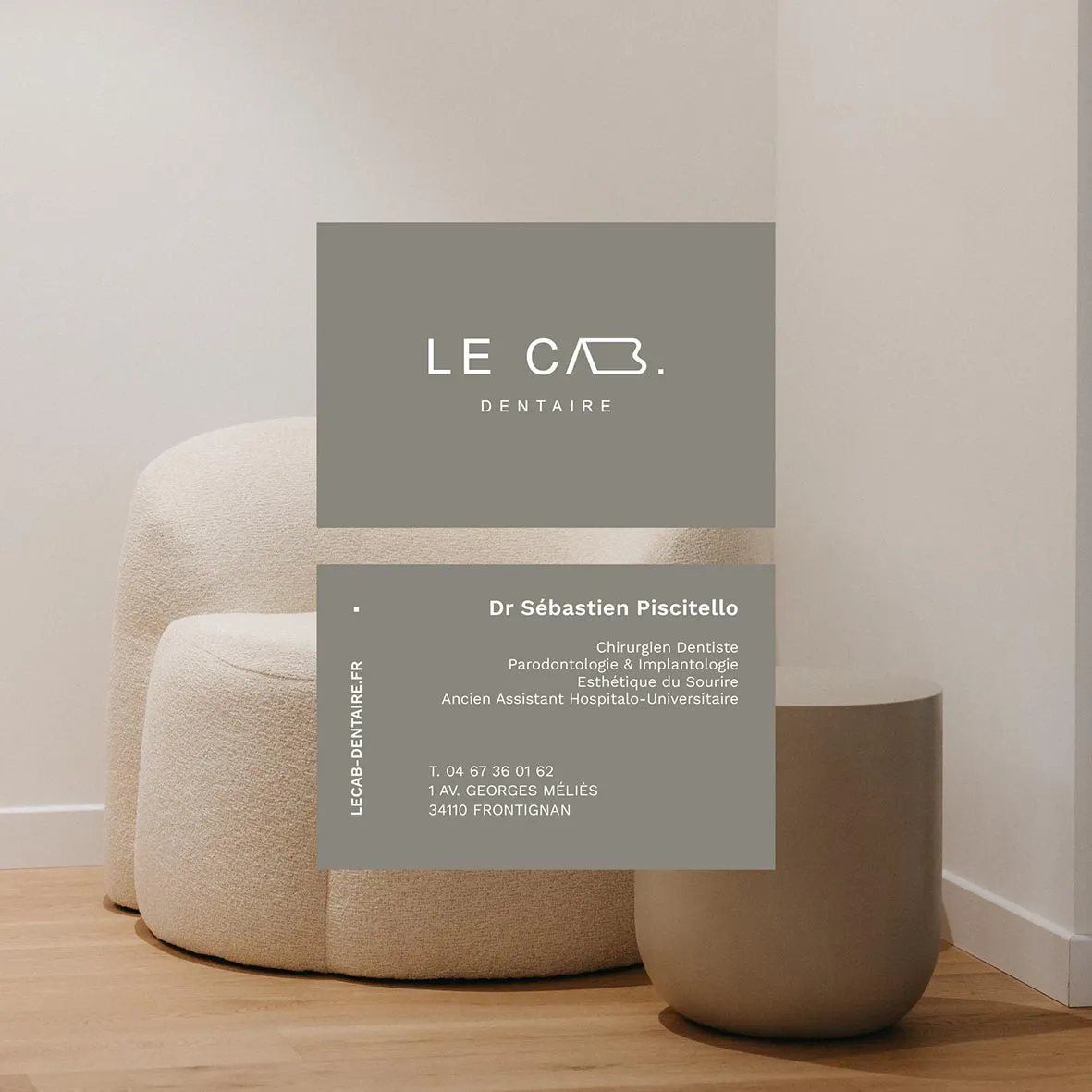 Nouvelle mission pour Sébastien et Martin : un projet complet, avec un double naming, un double logo et un accompagnement sur toute la partie signalétique sur-mesure. Une collaboration au long cours, menée sur près d’un an, de la création de l’identité visuelle jusqu’à sa mise en place sur le site. De nombreux échanges, comme toujours — parce qu’on aime construire avec nos clients, les faire participer, les impliquer, pour qu’ils s’approprient pleinement la démarche, aussi bien narrative que graphique. Situé à l’entrée de Frontignan, ce parc médical regroupe un cabinet dentaire (LE CAB), un opticien, et bientôt d’autres praticiens. Merci les gars pour votre confiance. À bientôt pour parler projets… et prémolaires !