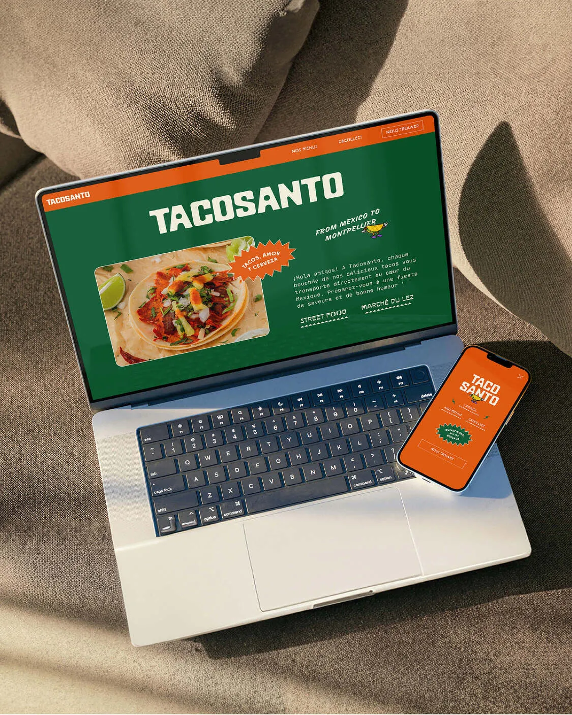 Nouvelle aventure avec les insatiables ! Comme souvent, tout commence par un coup de fil et cette phrase magique : « J’ai un projet. » Et là, ça y est. Les feuilles blanches se remplissent, griffonnées de mille idées. Matthieu a l’opportunité de reprendre un bus dans la street food du Lez. Le point de départ est posé. Mais maintenant, quoi faire ? Comment le faire ? Et surtout, dans quel style ? Après quelques tours et détours, on revient à l’essentiel : les tacos. Mais pas comme d’habitude. Non, il fallait réinventer. Alors, on plonge dans la couleur, dans le vivant, dans des associations de typos qui sentent bon l’Amérique latine. Un régal pour le studio. S'en suit un logo, une « épicerie graphique » complète, avec une silhouette iconique qui marque les esprits. Ensuite, le plaisir continue : design du bus, tenues du staff, site web... Une carte blanche pimentée et colorée. Muchas gracias à toute l’équipe